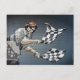 Carte postale de sport automobile de qualité : Un responsable de course automobile agitant un drapeau À damiers pour terminer un événement de course. Design par Frank Ramspott, Munich, Allemagne.