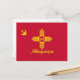 Carte postale avec la ville d'Albuquerque, Nouveau-Mexique; drapeau rouge avec oiseau jaune et symbole Nouveau-Mexique