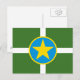 Carte postale avec drapeau de Jackson, Mississippi; drapeau vert avec étoile jaune dans un cercle bleu