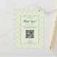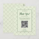 Cette conception de Carte de remerciements d'entreprise do-it-yourself comprend un code QR personnalisé pour les commentaires et dispose d'un motif diamant géométrique d'inspiration rétro dans des tons élégants de vert. Le design complexe attire l'attention et apporte une touche de sophistication à tout ensemble. Le étiquette crée une expérience de déballage mémorable.