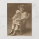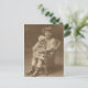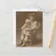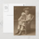 Postale enfant assis sur le fauteuil tenant la carte de po
