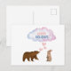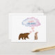 Chaleureuse et fantaisiste, cette carte postale de vacances capture la douce amitié entre un ours et un lapin partageant un moment festif.