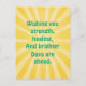 Fond jaune ensoleillé avec des rayons de soleil lumineux et un message d'espoir. Joyeux mais respectueux, parfait pour quelqu'un qui se remet d'une maladie ou d'une opération.