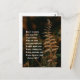 La carte postale de l'Écriture de citation inspirante représente une photographie de la nature avec une fougère de couleur blé et un arrière - plan boisé brun. Il présente la Bible Verse Ésaïe 46:4, "Même à votre vieillesse et poils gris je suis lui, je suis celui qui vous soutiendra. Je vous ai fait et je vous porterai; je vous soutiendrai et je vous secourrai." _
