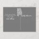 Faire-part de déménagement dans une maison moderne mettant en vedette l'état de l'Alabama sur fond de toile grise. Retournez la carte pour voir un verso personnalisable pour une touche supplémentaire spéciale.