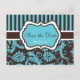 Postale Faire-part Aqua, Blanc, Damas Brown Enregistrer la carte Date