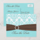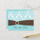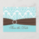 Postale Faire-part Aqua Blue, Brown, blanc Damas Enregistrer la carte