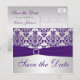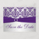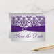 Postale Faire-part Argent et pourpre Damask Enregistrer la carte Date