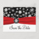 Postale Faire-part Black, White, Red Snowflakes Enregistrer la carte
