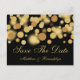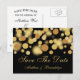 Ce design moderne et élégant dispose d'un motif à points de bokeh or avec un arrière - plan noir. Personnalisez cette carte postale avec les informations de votre mariage.