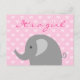 Postale Faire-part Carte d'annonce de naissance d'éléphant rose et gr