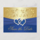 Cette carte postale de conservation de date avec des cœurs joints floraux bleus royaux et or correspond à l'invitation de mariage et aux autres articles présentés ci-dessous. Si vous avez besoin d'autres articles assortis dans ce design, veuillez m'envoyer un courriel à niteowlstudio@gmail.com.