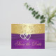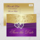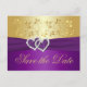 Cette carte postale de conservation de date à coeurs joints floraux violets et or correspond à l'invitation de mariage et aux autres articles présentés ci-dessous. Si vous avez besoin d'autres articles assortis dans ce design, veuillez m'envoyer un courriel à niteowlstudio@gmail.com.