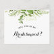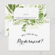 Demandez à vos amis et à votre famille de faire partie de votre mariage avec cette carte florale "Veux-tu être ma demoiselle d'honneur" avec des éléments botaniques verts et une écriture calligraphique féminine. Des articles assortis sont disponibles. Carte de demande pour la suite de la mariée