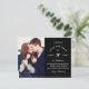 Cette élégante carte de sauvegarde de date a un look vintage et est parfaite pour un mariage de destination. Elle présente la silhouette d'un avion avec les détails de la date du mariage dans un design rétro. Une photo du couple complète cette carte élégante. Plus de détails peuvent être ajoutés au verso.