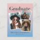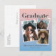 Cette carte de félicitations de diplôme chic et moderne présente 3 photos sur un fond dégradé rose et bleu. Personnalisez-la selon vos besoins. Vous pouvez trouver des produits assortis dans ma boutique.