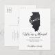 Design moderne et élégant de la carte de l'État de l'Illinois sur tableau noir avec cœur pour annoncer votre déménagement sur une carte postale personnalisable avec votre texte. Découvrez la boutique Graphic Art Design pour d'autres produits correspondant à ce design !