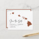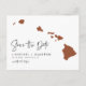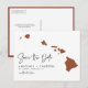 Annoncez votre mariage de destination au paradis avec cette carte postale "Save the Date" à code QR, représentant une carte illustrée de l'État d'Hawaï. Le code QR intégré offre à vos invités un moyen pratique d'accéder à votre site web de mariage, à votre page de réponse, ou même à un message vidéo personnalisé.