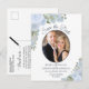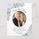 Postale Faire-part Carte de mariage à motifs floraux et photo Bleu Po