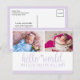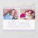 Postale Faire-part Carte de naissance photo Bonjour le monde Violet L