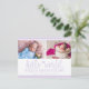 Une carte de naissance photo bonjour le monde écrite à la main violet lavande pour accueillir votre nouveau-né.