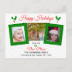 Cette carte de vœux de changement d'adresse de Noël présente vos trois photos. La grande photo apparaît sans cadre et les deux photos plus petites ont un cadre vert. Le fond blanc est parfait pour quelques brins de houx qui entourent les mots "Joyeuses Fêtes". Au verso de la carte postale, vous pouvez personnaliser votre adresse et un message de bienvenue apparaît. Un excellent moyen d'annoncer votre changement d'adresse pour les fêtes. Copyright Kathy Henis