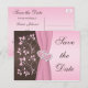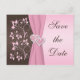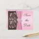 Cette carte de rappel à sauvegarder postale florale rose et marron comporte des fleurs roses, un ruban rose IMPRIMÉ et une paire de cœurs de bijoux en diamant et paillettes IMPRIMÉS qui correspondent à l'invitation de mariage présentée ci-dessous. Si vous avez besoin d'autres articles assortis, veuillez envoyer votre demande par courriel à niteowlstudio@gmail.com.