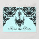 Postale Faire-part Carte de rappel de damas à lustre bleu et noir