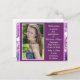 Cette carte de rappel de remise des diplômes personnalisée avec photo florale violette et bleue est parfaite pour être envoyée aux amis et à la famille au début de l'année scolaire, lorsque vous obtenez vos informations de remise des diplômes. Cela leur envoie juste un petit rappel qu'ils devraient marquer cette date sur leur calendrier en préparation du grand événement. Des invitations officielles pourront être envoyées à une date ultérieure.
