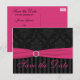 Cette carte de faire-part de mariage "save the date" au motif damassé rose vif, gris charbon foncé et noir avec un motif rayé comporte un ruban rose IMPRIMÉ avec une boucle ornée de diamants IMPRIMÉS qui correspond à l'invitation de mariage présentée ci-dessous. Tout le texte est personnalisable. ***VEUILLEZ NOTER qu'il n'y a pas d'éléments en relief sur cette carte. Tout est imprimé à plat. ***VEUILLEZ NOTER que si vous changez la police ou la taille de la police, cela peut modifier l'impression de votre carte. Elle sera imprimée telle que vous la voyez sur votre écran, donc si vous avez des problèmes d'alignement ou de taille, veuillez me contacter AVANT de commander. Je ne verrai pas votre carte une fois que vous l'aurez commandée, et Zazzle ne modifiera RIEN (faut