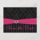 Postale Faire-part Carte de rappel rose gris noir damassé à rayures p