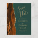 Cette élégante carte de sauvegarde moderne présente une bordure d'agate aquarelle orange brûlé et rouille, rehaussée de paillettes dorées fausses. Personnalisez facilement le texte doré sur fond vert émeraude foncé. Au verso, modifiez l'adresse de retour personnalisable et entrez l'URL de votre site web de mariage pour générer un code QR que vos invités peuvent scanner pour en savoir plus sur votre événement à venir.