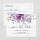 Carte de sauvegarde de mariage à l'aquarelle florale. Carte postale de sauvegarde élégante avec des fleurs et de la verdure peintes à la main en violet, mauve, lilas et lilas avec une calligraphie élégante. Carte de sauvegarde de mariage florale moderne. Vous pouvez personnaliser la formulation, le style de police, la couleur et la taille à l'avant et à l'arrière de la carte. N'hésitez pas à me contacter pour des articles assortis.