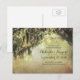 carte de sauvegarde de date avec guirlande lumineuse et vieil arbre pour mariage en plein air. Sauvegarde de date de campagne rustique avec des lumières en forme de mousse espagnole et un vieux chêne. Cartes postales anciennes de style vintage