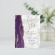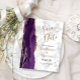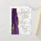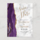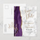 Cette élégante carte de sauvegarde de date moderne présente une bordure d'agate aquarelle violette taillée avec de la fausse paillette d'or. Le texte personnalisable de couleur or et noir apparaît sur un fond de marbre gris et blanc. Le verso répète les informations, ainsi qu'une adresse de retour personnalisable.