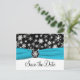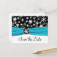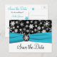 Cette carte postale de sauvegarde de date de mariage à flocons de neige noir et blanc avec un ruban bleu aqua FAUX et un médaillon de flocon de neige correspond à l'invitation de mariage présentée ci-dessous. Si vous avez besoin d'autres éléments assortis dans ce design, veuillez envoyer votre demande par courriel à niteowlstudio@gmail.com.