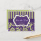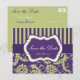 Cette carte postale de sauvegarde de date en damas rayé violet, vert et blanc correspond à l'invitation de mariage présentée ci-dessous. Si vous avez besoin d'autres articles assortis, veuillez envoyer votre demande par courriel à niteowlstudio@gmail.com.