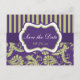 Postale Faire-part Carte de sauvegarde de date en damas violet, blanc