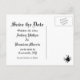 Un motif damassé d'araignée audacieux, accentue cette carte de sauvegarde de mariage d'Halloween sur fond de lin gris. Cette carte de sauvegarde est encore améliorée avec une typographie gothique inquiétante et une araignée dans le coin arrière de la carte.