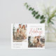 Carte d'annonce de déménagement moderne et élégante avec un dessin de trois petits sapins de Noël verts, une écriture calligraphique décontractée et deux photos de famille que vous pouvez personnaliser.