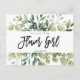 Postale Faire-part carte demoiselle d'honneur feuillage verdure