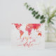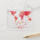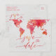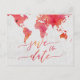 Postale Faire-part Carte du monde à l'aquarelle corail Mariage Enregi