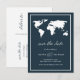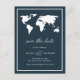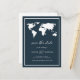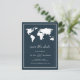 Postale Faire-part Carte du monde bleu foncé | Élégant Voyage Enregis