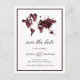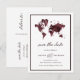 Postale Faire-part Carte du monde de Bourgogne | Élégant Voyage Enreg