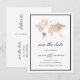 Postale Faire-part Carte du monde | Élégant Voyage Enregistrer la dat