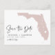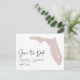 Annoncez votre date de mariage à votre famille et amis avec ce thème d'état Floride enregistrer la date annonce carte postale. Il présente une illustration de l'état de la Floride, la typographie simple et l'écriture manuscrite. Personnalisez en ajoutant les noms, la date, le lieu et d'autres détails. Cet état de la Floride enregistrer la carte date est parfait pour tout thème mariage.