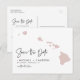 Annoncez votre date de mariage à votre famille et amis avec ce thème d'état Hawaii enregistrer la date annonce carte postale. Il présente une illustration de l'état d'Hawaï, une simple typographie et un script manuscrit. Personnalisez en ajoutant les noms, la date, le lieu et d'autres détails. Cet état de Hawaii enregistrer la carte date est parfait pour tout thème mariage.
