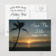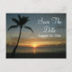 Ce design romantique présente une photo d'un coucher de soleil sur la plage avec une silhouette de palmier unique. Personnalisez cette carte postale avec les détails de votre prochain mariage. Elles sont idéales pour les mariages à thème de plage ou de destination.