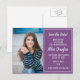 Faites vous-même une carte de "Sauvegarde de date" de remise de diplôme personnalisée avec photo et couleur violette (modifiable). Utilisez les outils de couleur d'arrière-plan de Zazzle pour modifier cette carte. Si vous choisissez de la modifier en blanc ou dans une couleur claire, et que vous souhaitez changer la couleur de votre texte, cela est tout à fait personnalisable également.
