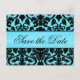 Postale Faire-part Damas bleu et noir Enregistrer la carte Date